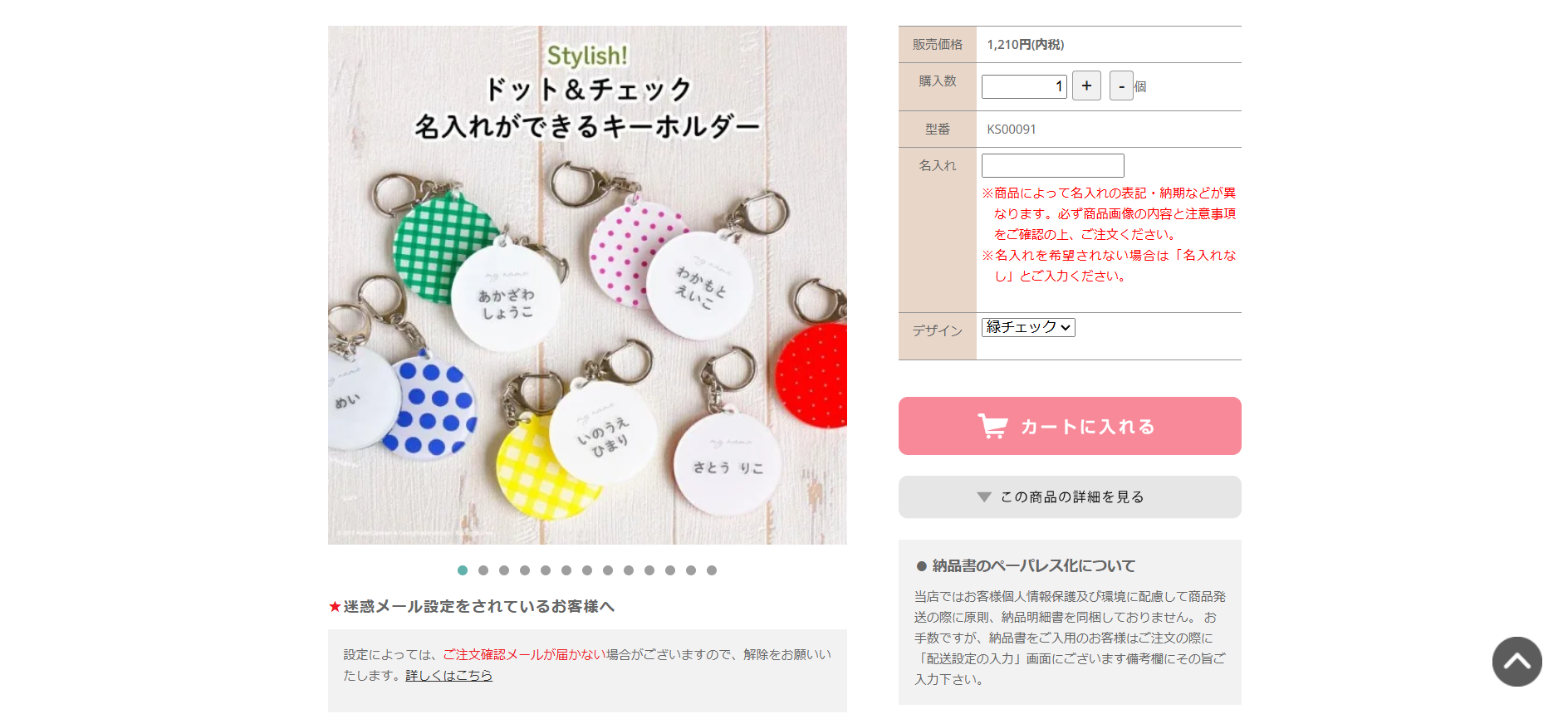 参考:Stylish! ドット&チェック 名入れができるアクリルキーホルダー|Kikka for mother