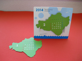 ※豊島の形にカットした卓上カレンダー。