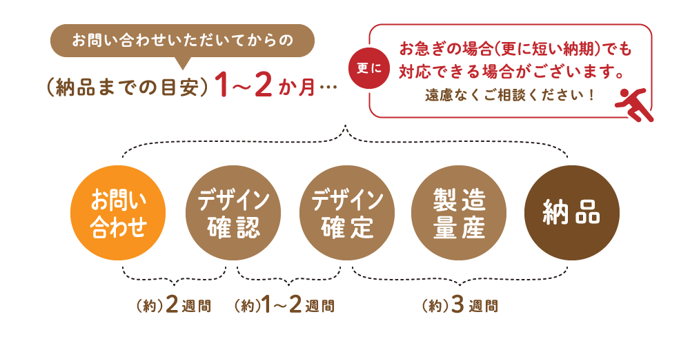 納品場所によりお日にちをいただく場合がございますので、お早めにご相談ください。