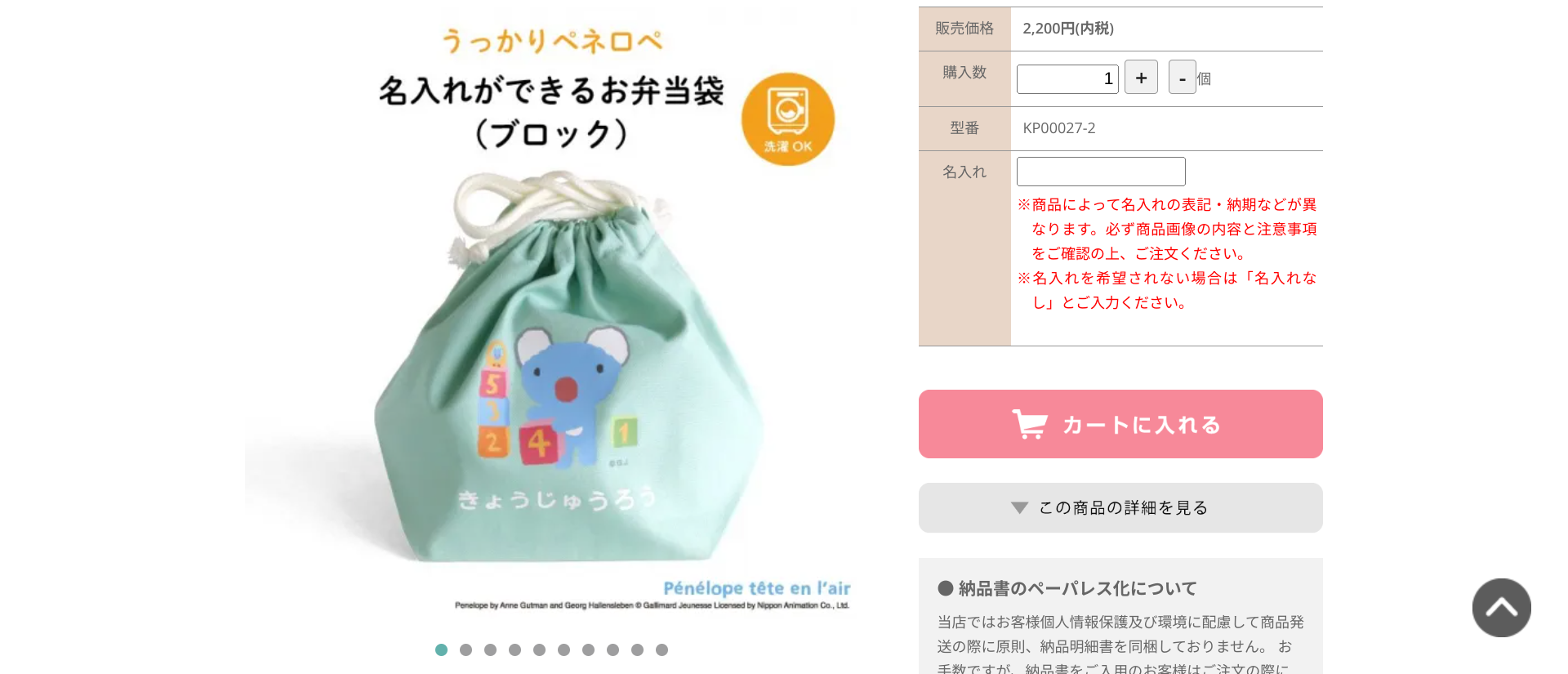 「うっかりペネロペ」のかわいいお弁当袋が新登場!Kikka for motherオンラインショップ限定のオリジナルデザインです。アルミお弁当箱とトリオセットがしっかり収まる大きめサイズで、使い勝手も抜群。お名前入りでオーダーできるので、名前を書く手間が省けるのも嬉しいポイント。