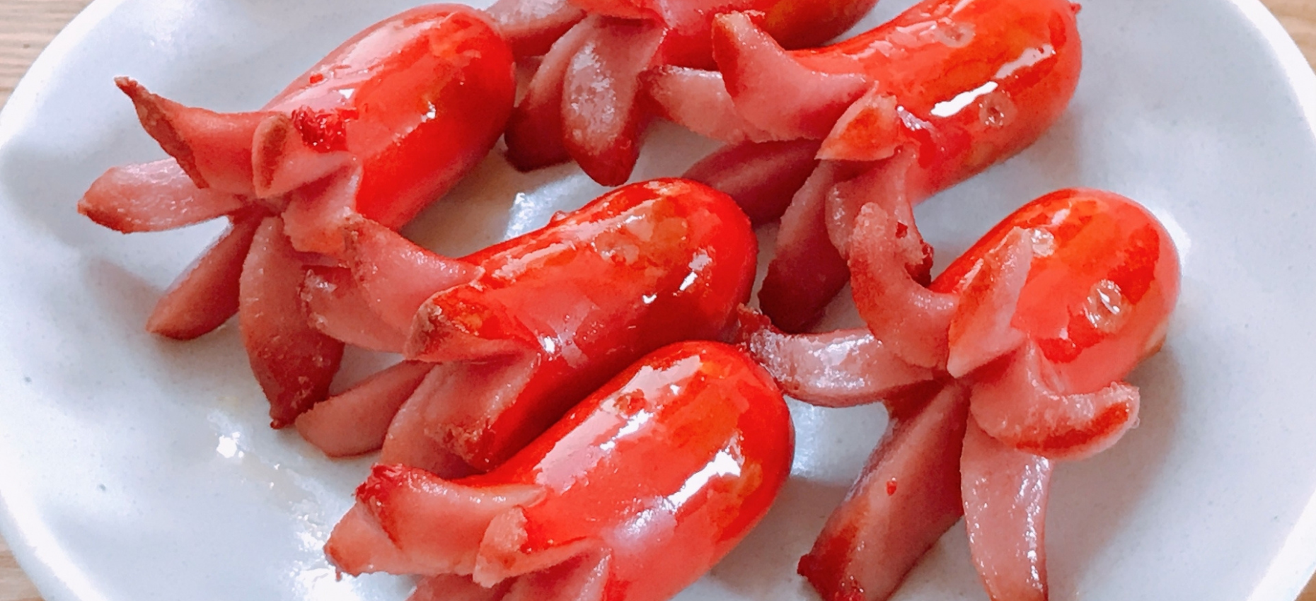 | 花ウインナー | ウインナーを半分に切ってから、切り込みを入れて焼く |